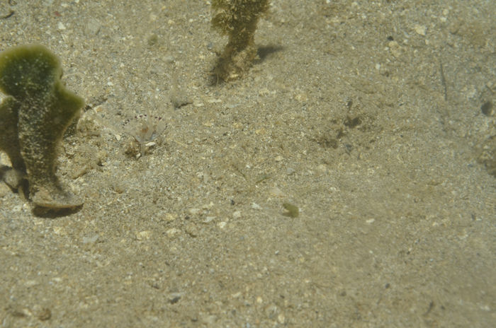 The most important collection for my project also happened during this time by accident. I planned to witness spawning once again with a colleague from the lab. However, the sea was too rough for us to enter that night. Since we had to return the tanks the next day, and we did not want to waste them, we decided to go explore a southeastern beach or reef the next day. We drove along the entire coastline, trying to enter at multiple locations, but, despite no wind onshore, there were gigantic waves, and we did not want to risk it. After driving away from the last location wearing our wetsuits and our gear fully assembled, we finally settled on a bay with a riverine inlet with plenty of soft bottom as it turns out. We have found some interesting animals, and my colleague suggested that we returned at night, as it seemed like suitable habitat for both of our organisms. Initially sceptical, as my animals were expected to occur on the north facing soft bottom habitats, I agreed, since a night dive is always fun. I could not have been more wrong. I collected 14 specimens in one night, and they were a lot easier to capture than their conspecifics in the north. I also did not even have to look for them, they were incredibly abundant, and the only reason I had to stop was because we agreed to return after 90 minutes. My colleague has encountered a huge sting ray as well (2 m according to her), that I missed, unfortunately.